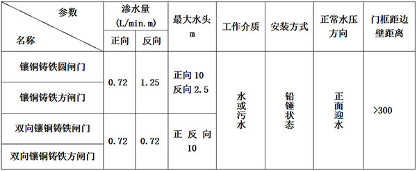 6、方向承壓閘門應選用時應注明,正向承壓閘門當用于隨受么向水壓時,水頭應<2.5m;